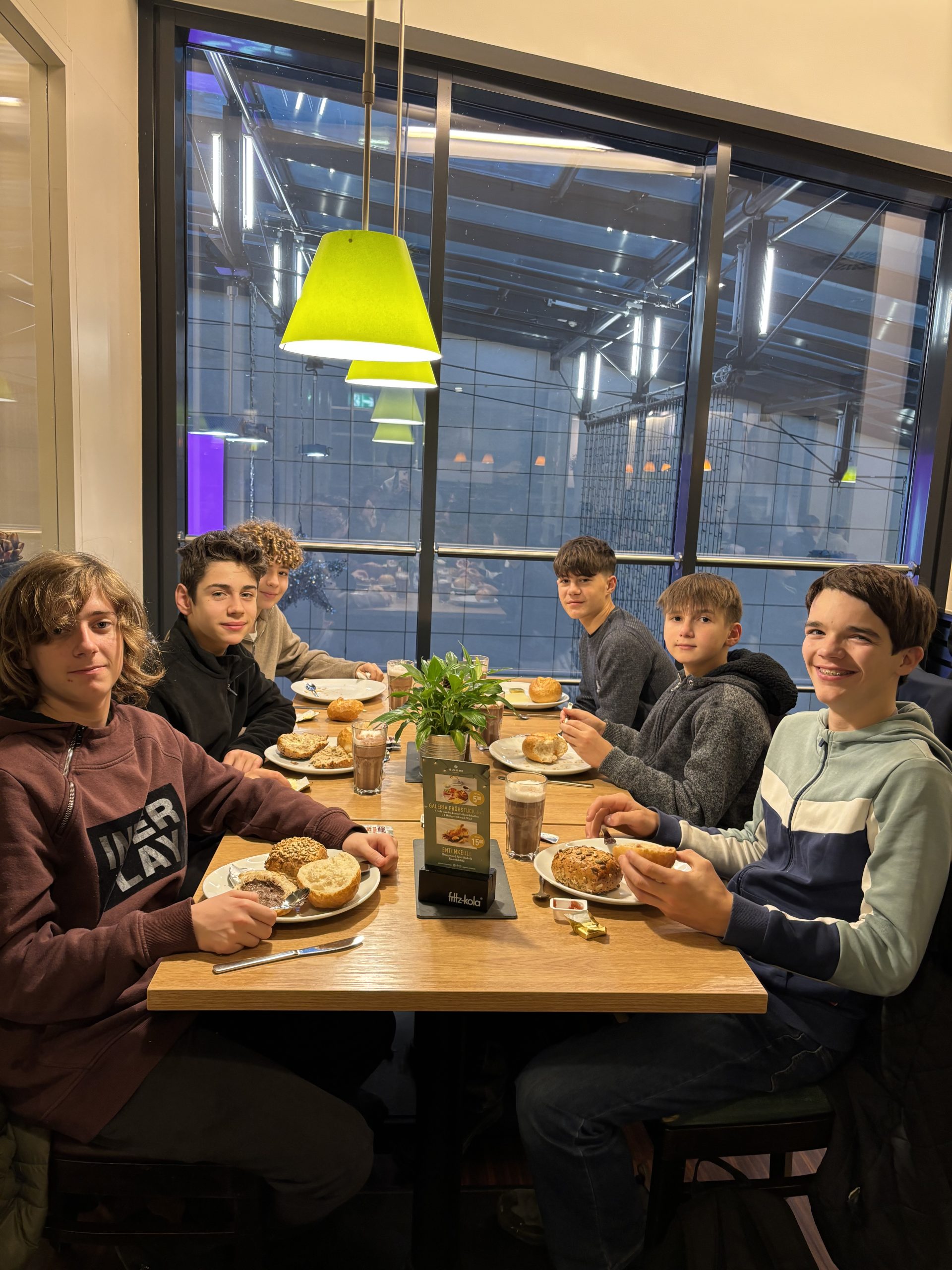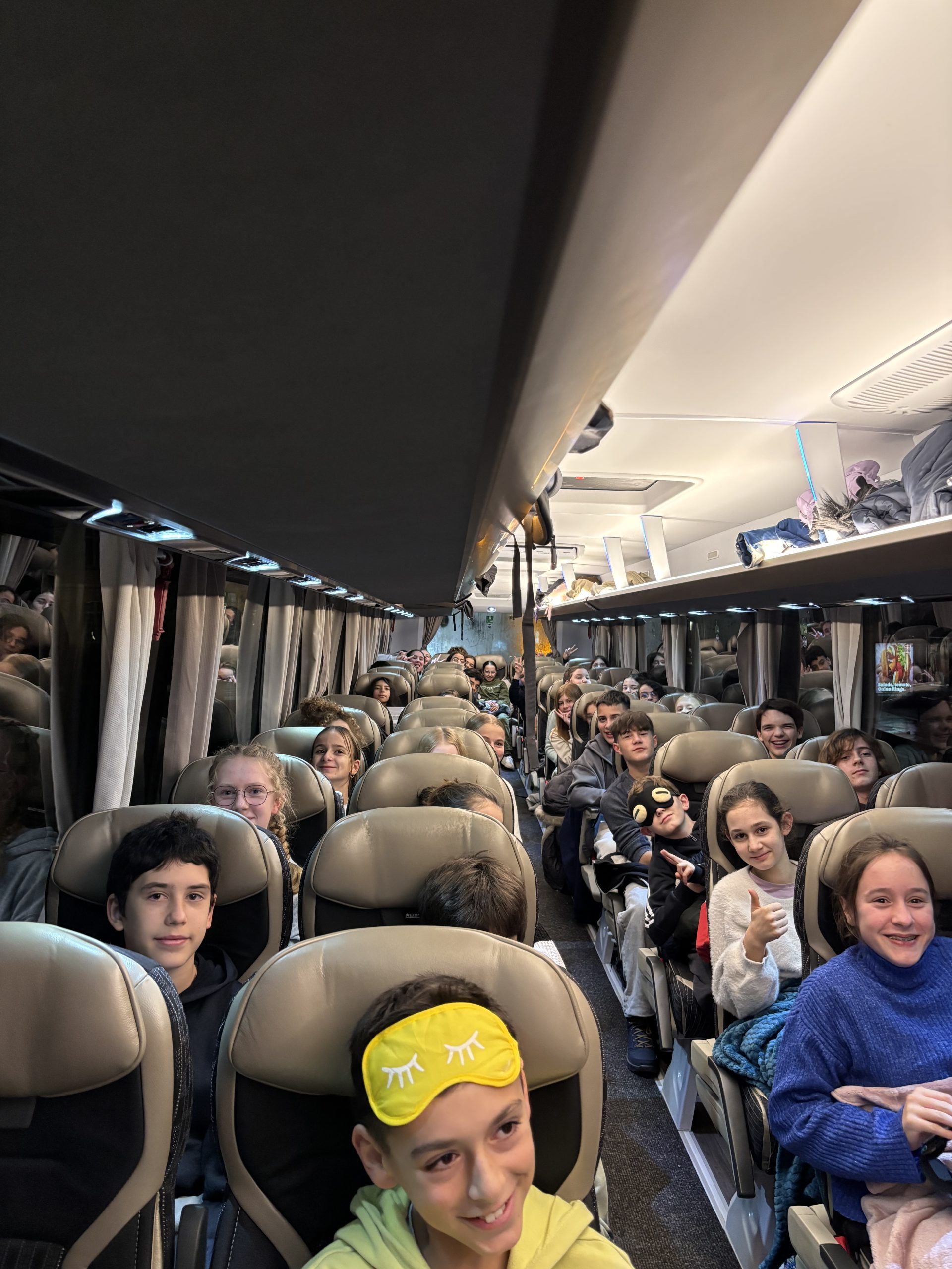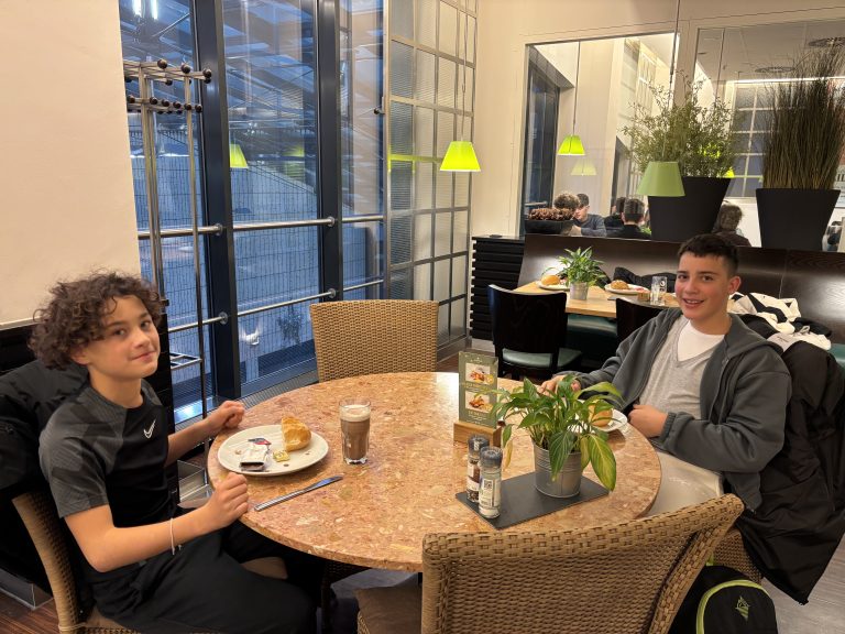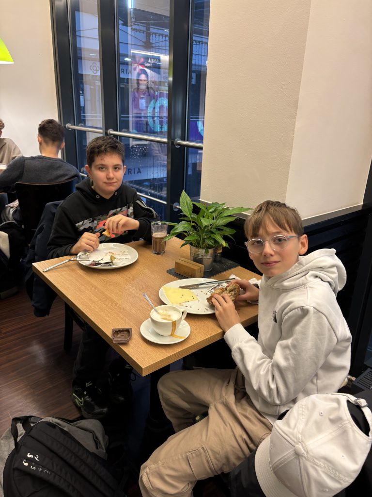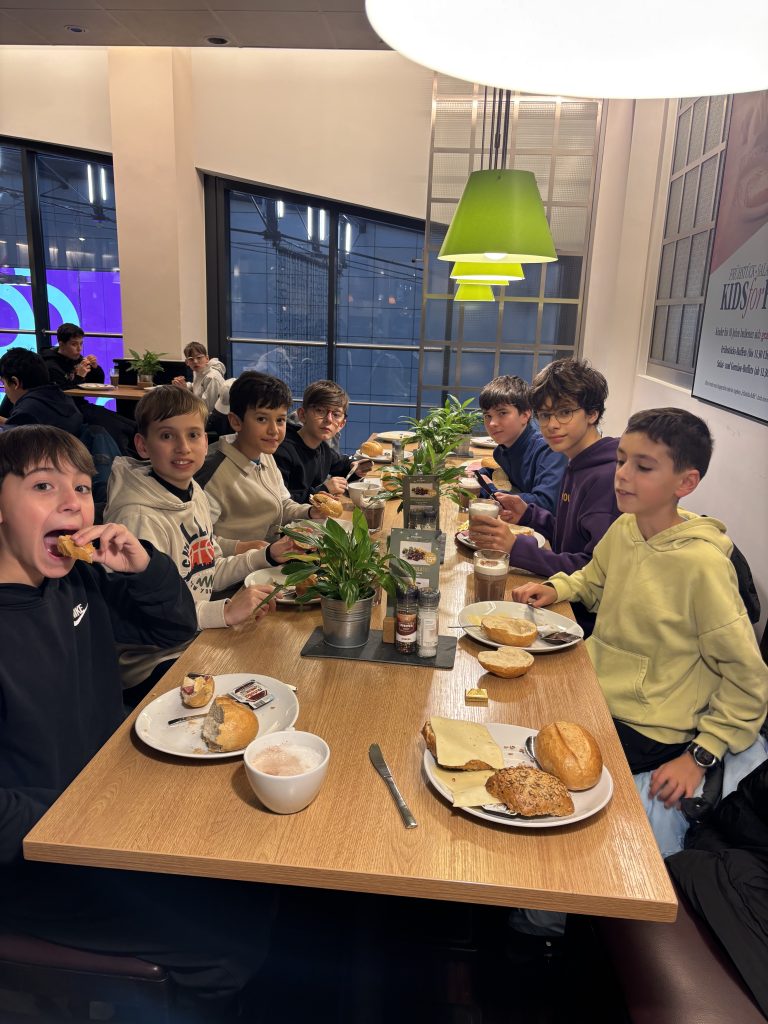 Après une nuit dans le bus, petit déjeuner typiquement allemand, avec pains variés, fromage, charcuterie, confiture, Nutella, beurre et boissons au choix.