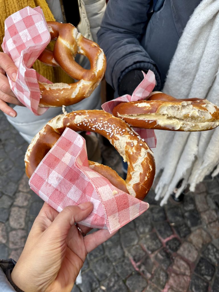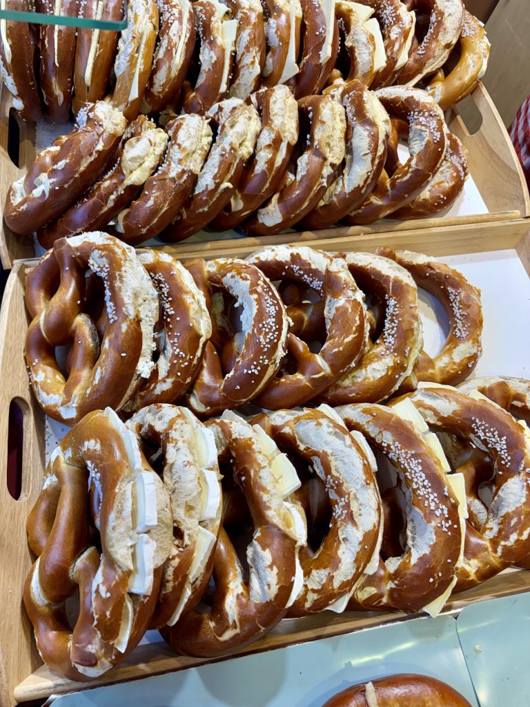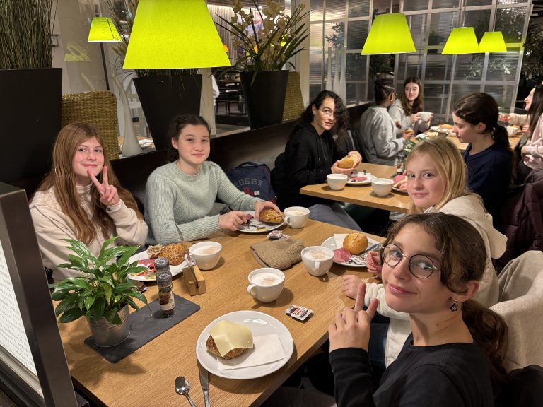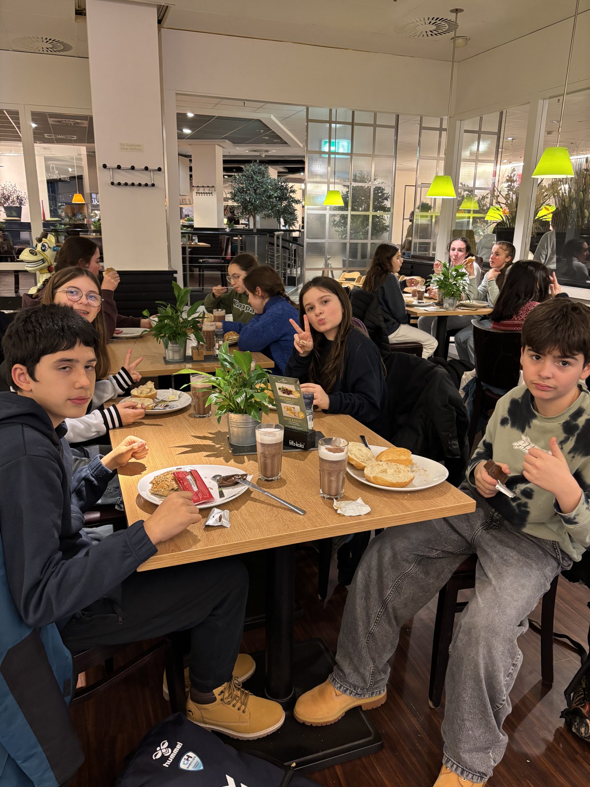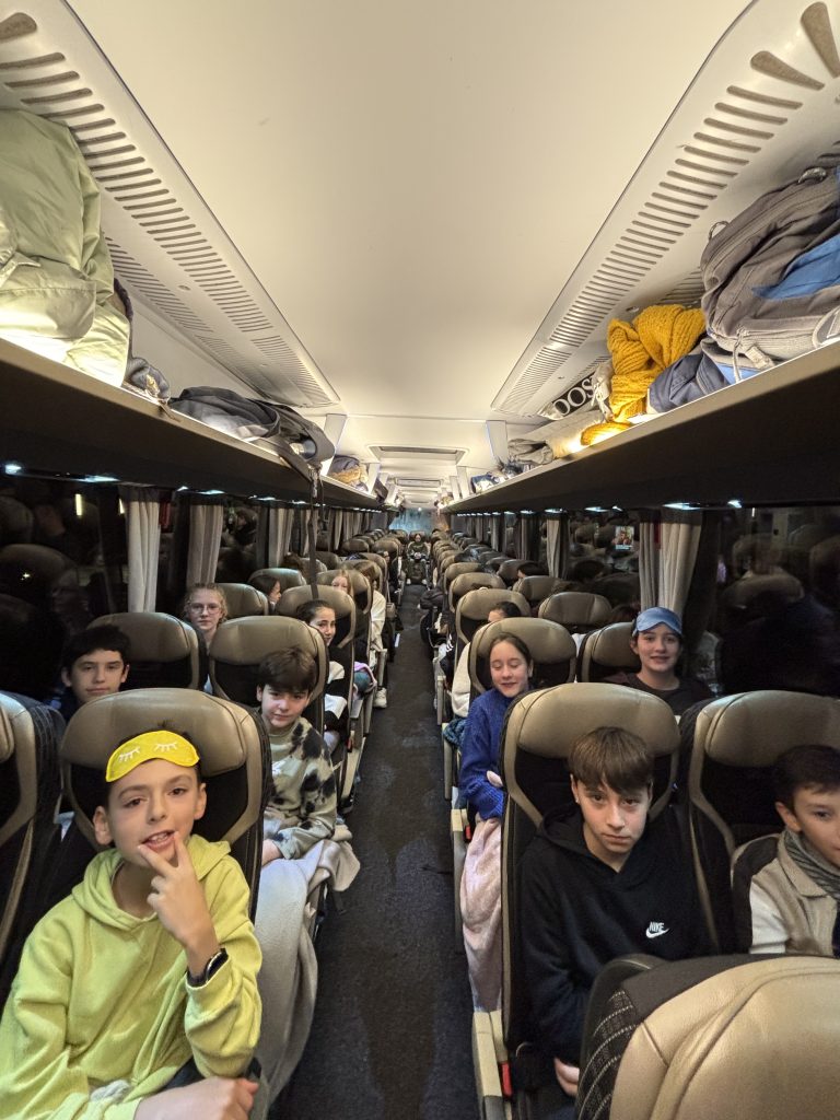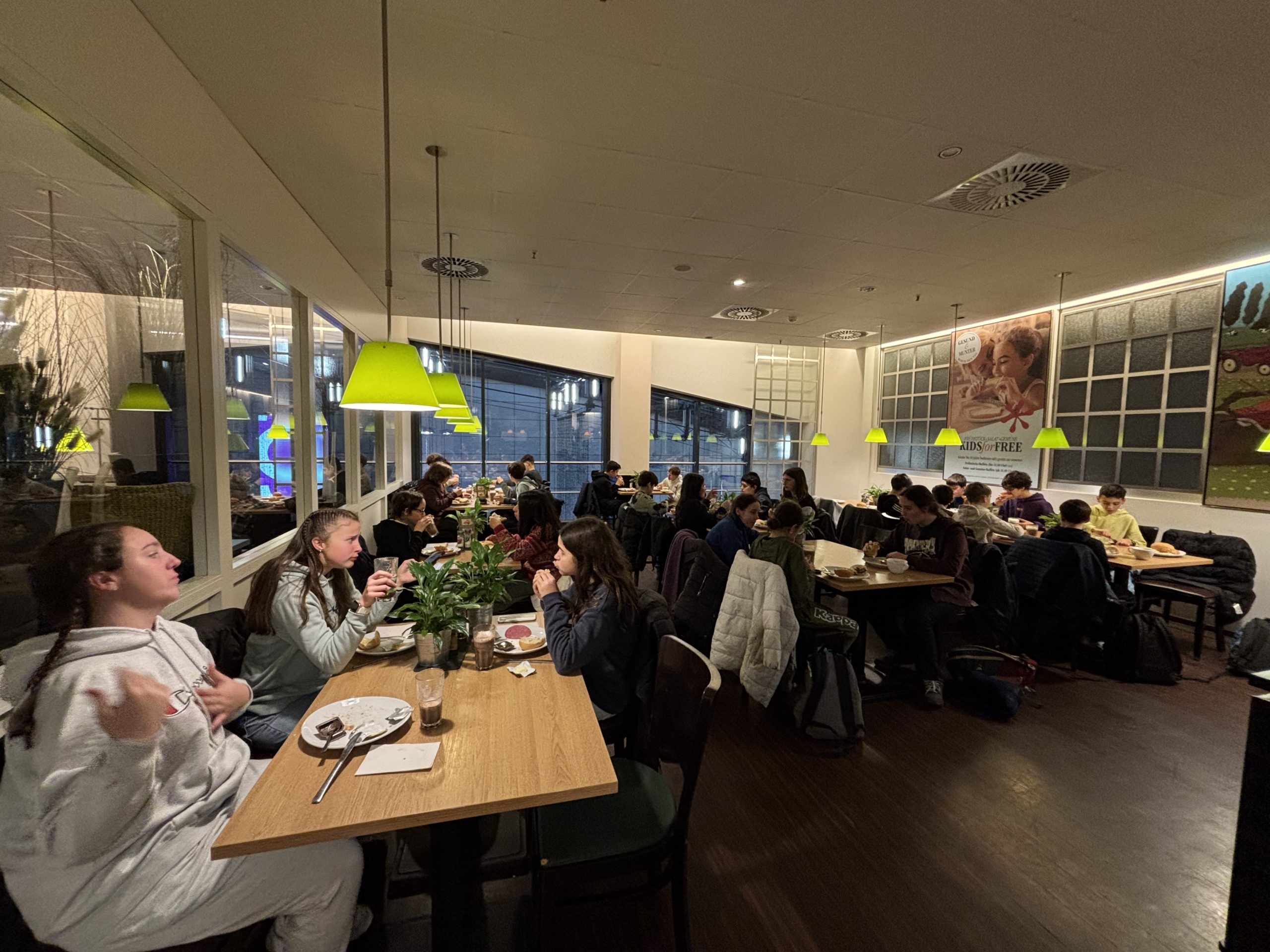 Après une nuit dans le bus, petit déjeuner typiquement allemand, avec pains variés, fromage, charcuterie, confiture, Nutella, beurre et boissons au choix.