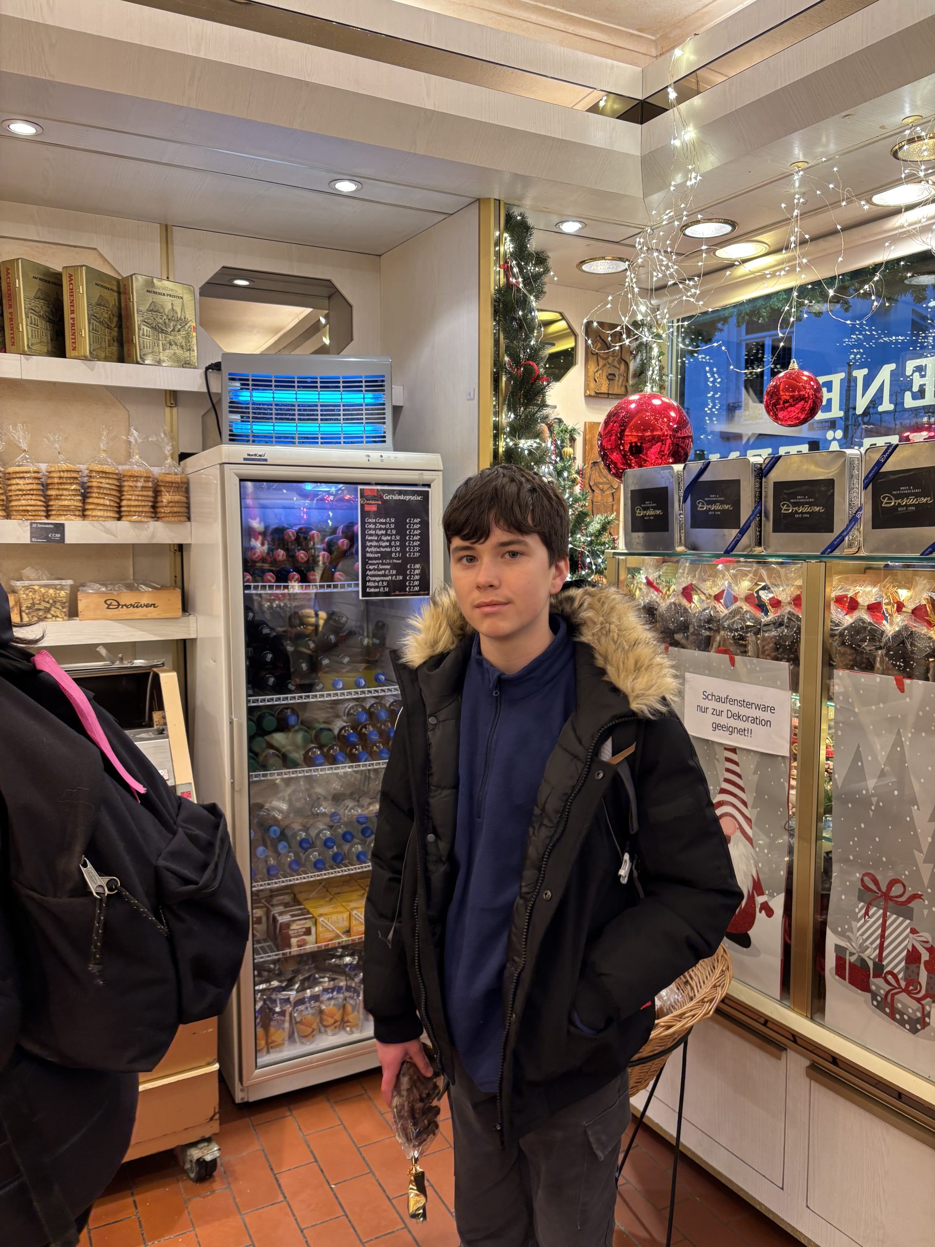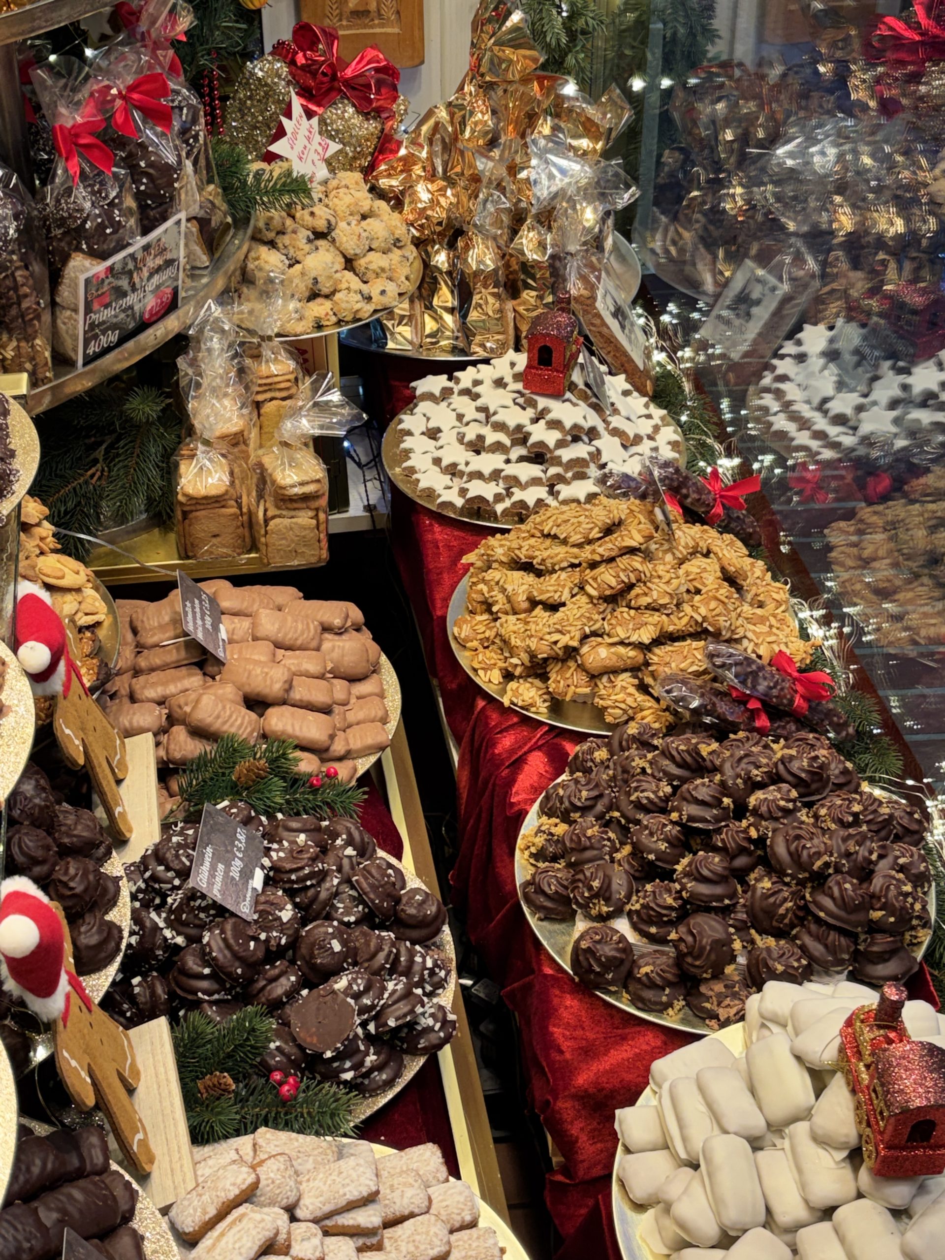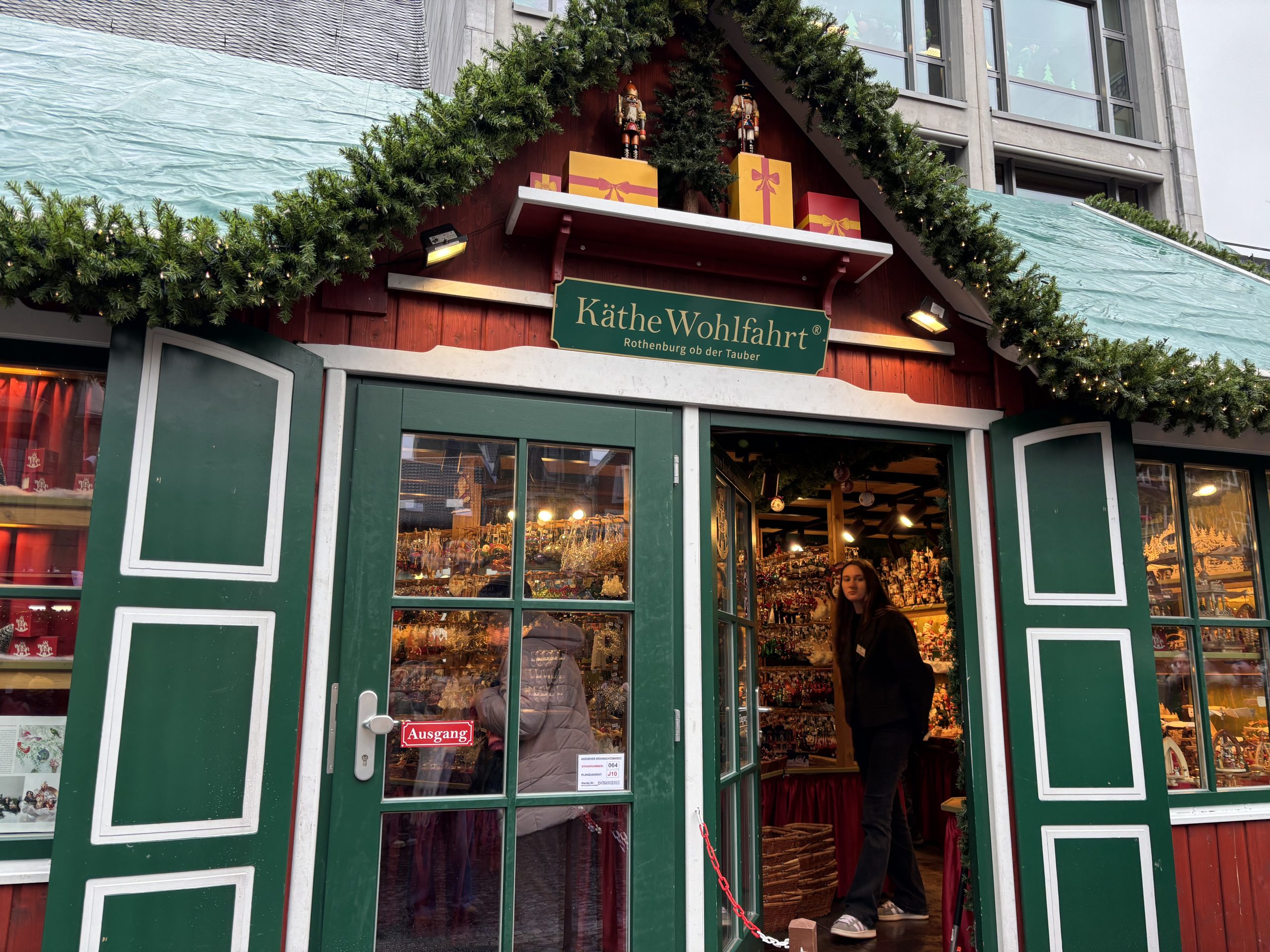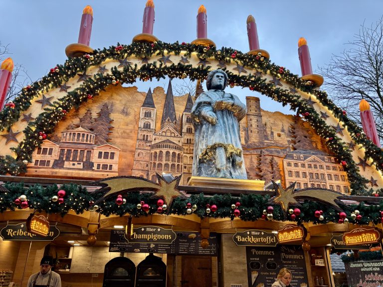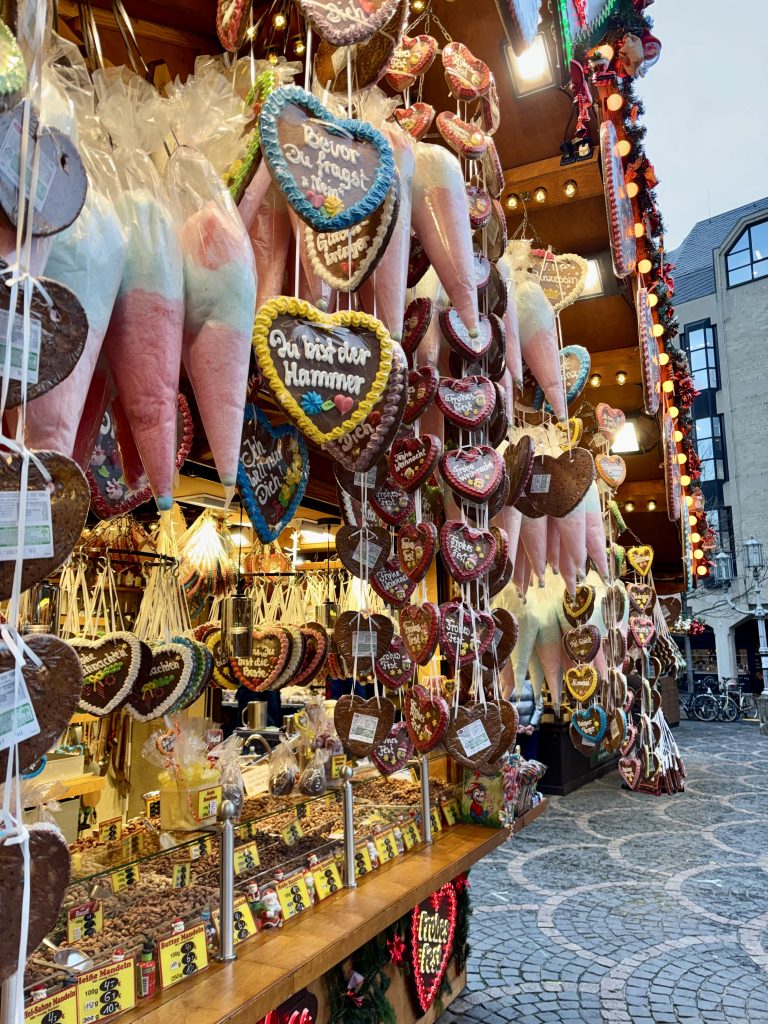 La jeune fille aux Printen (statue). Dégustation et achats de Printen- pains d’épices , grande spécialité d’Aix la Chapelle.