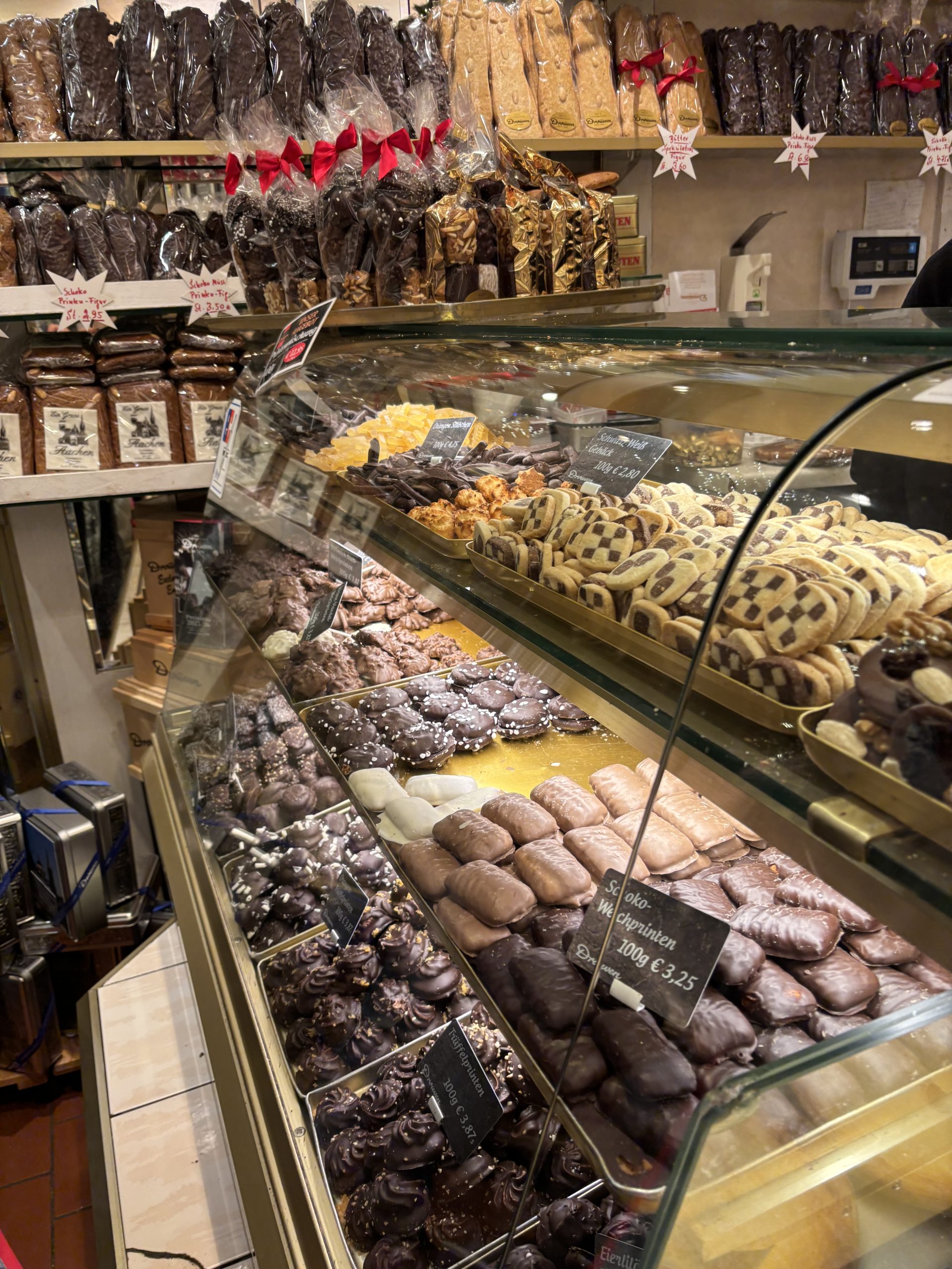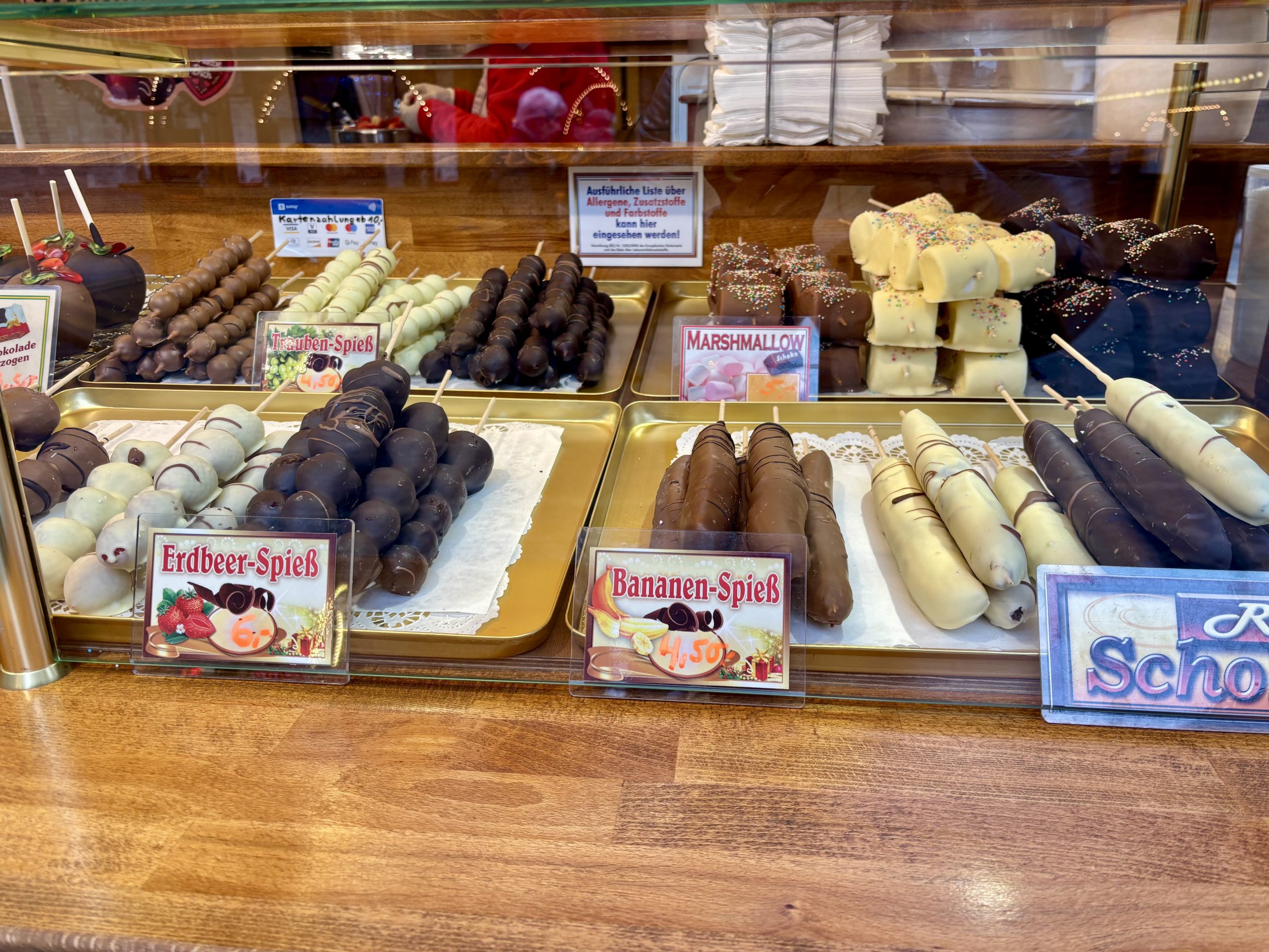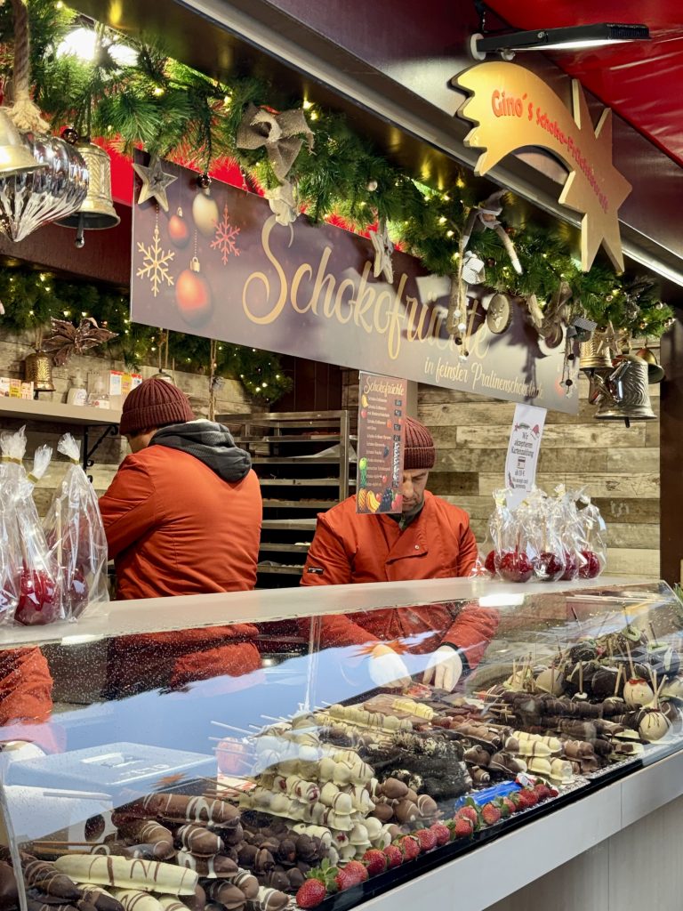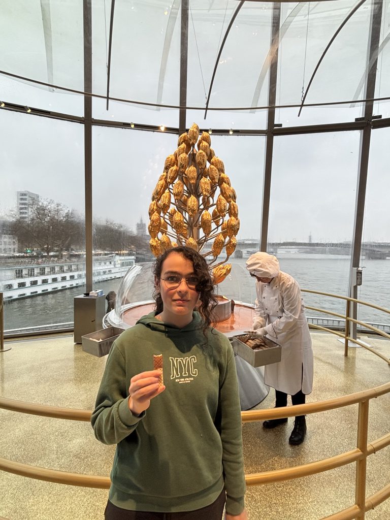 La jeune fille aux Printen (statue). Dégustation et achats de Printen- pains d’épices , grande spécialité d’Aix la Chapelle.