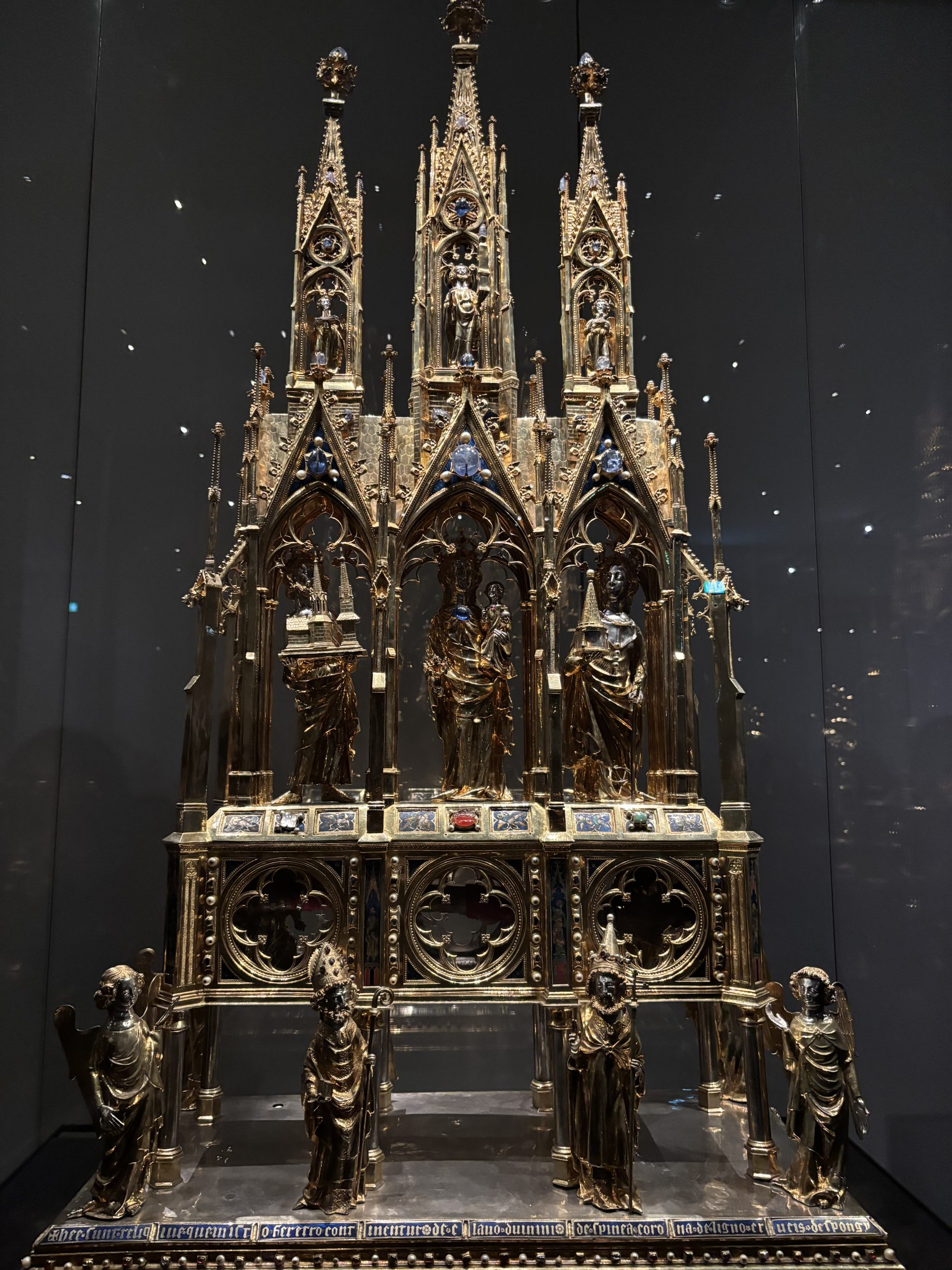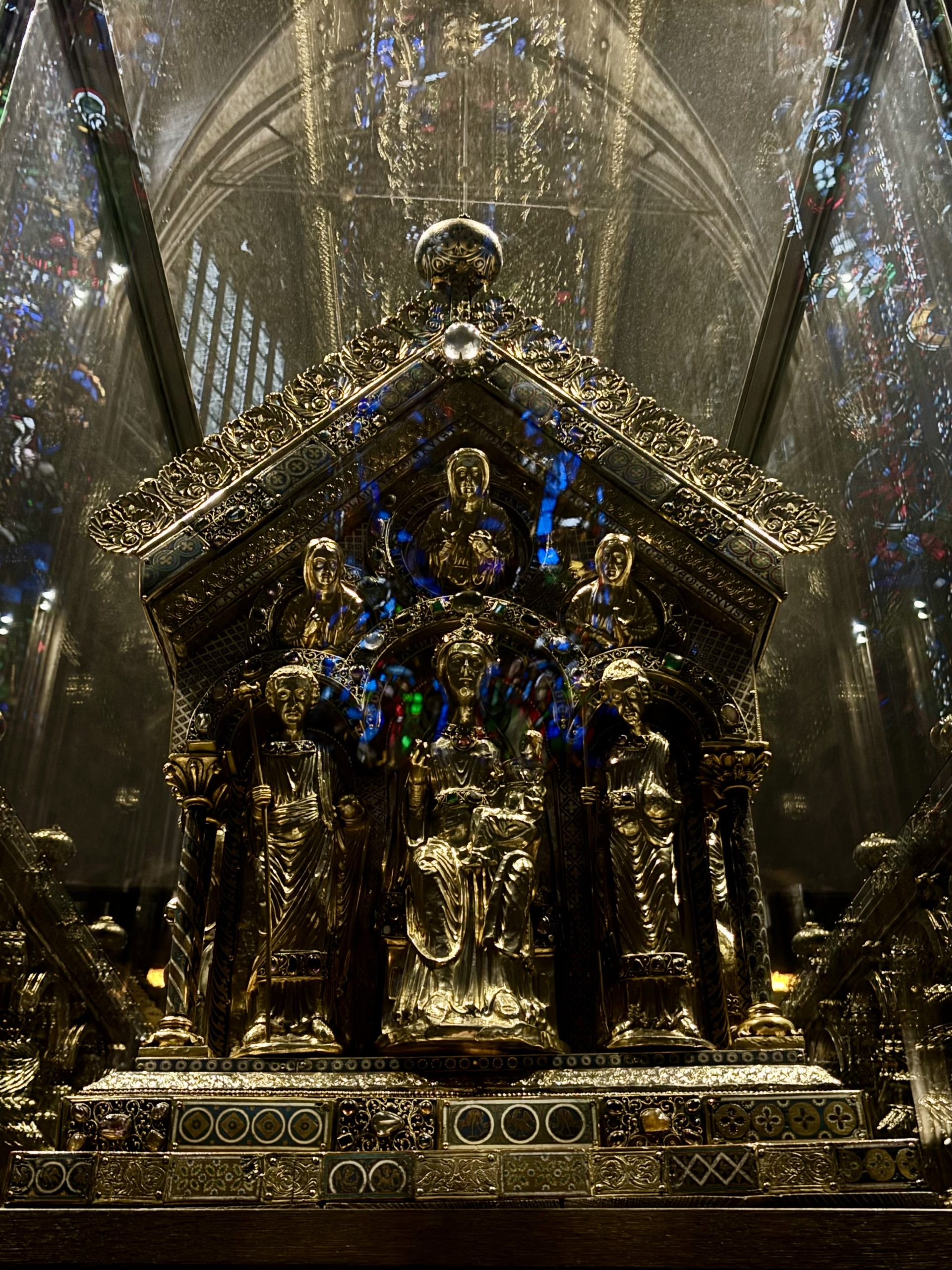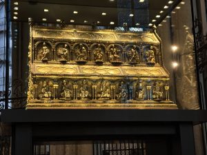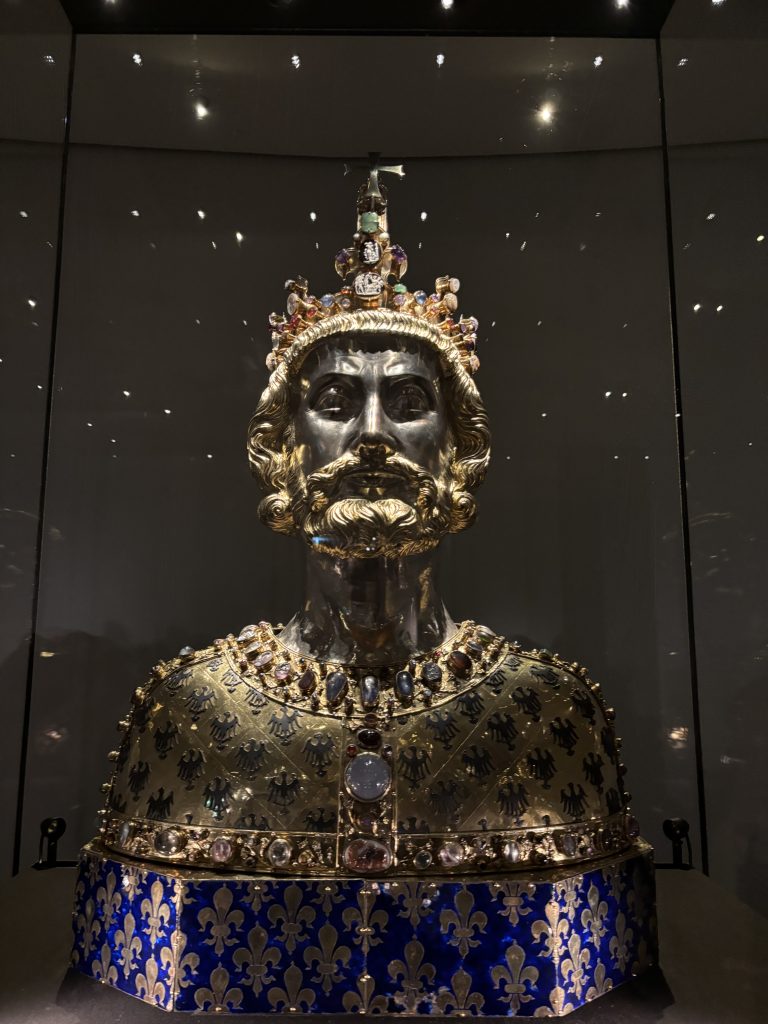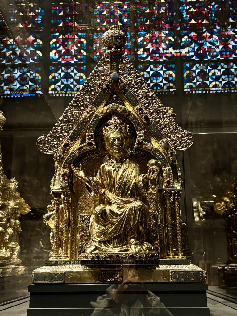 Après la visite de la cathédrale, visite en petits groupes du musée du Trésor de la cathédrale. Reliquaires en or, buste de Charlemagne, croix de Lothaire et sarcophage de Proserpine.
