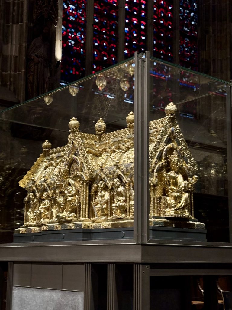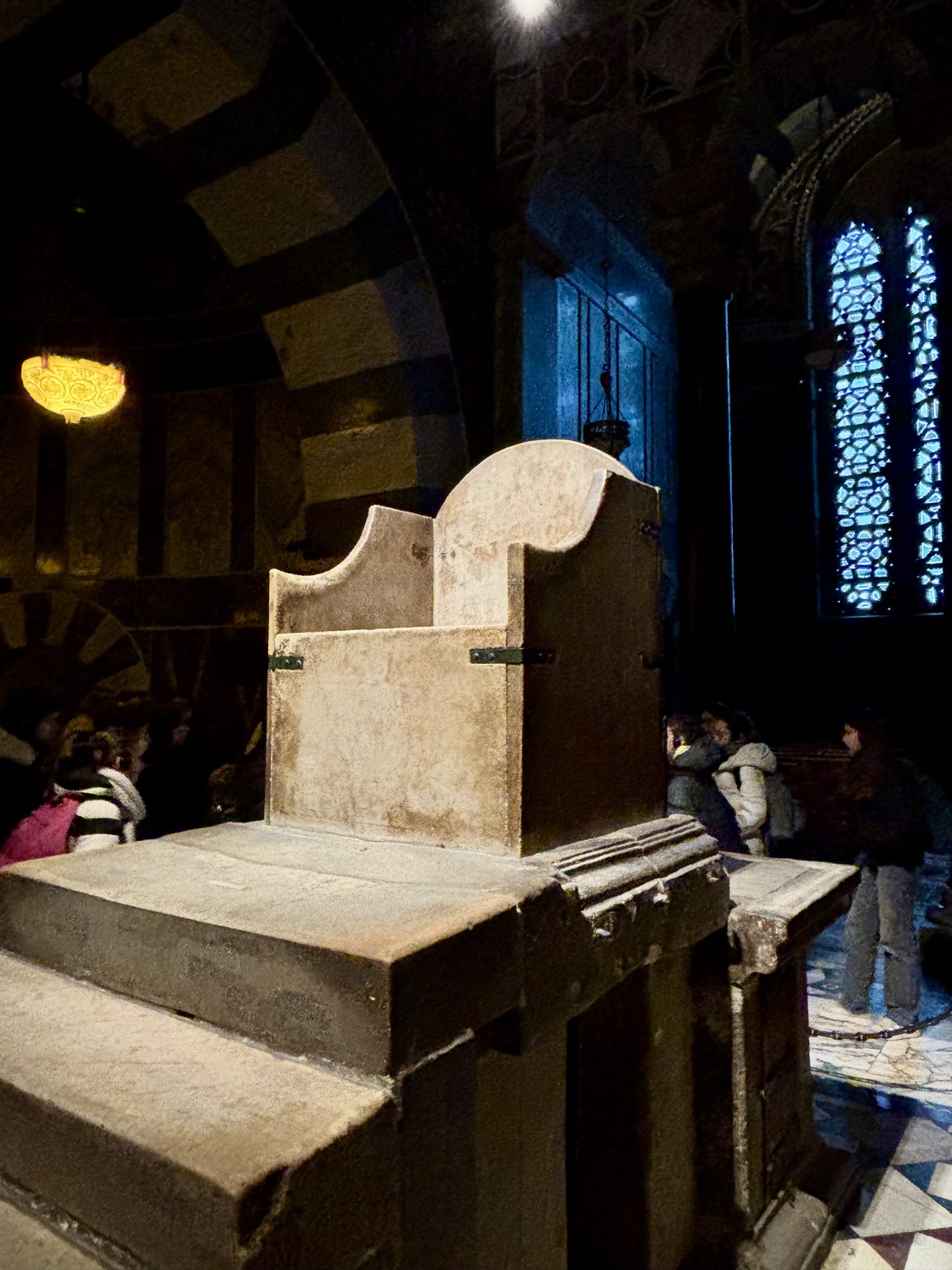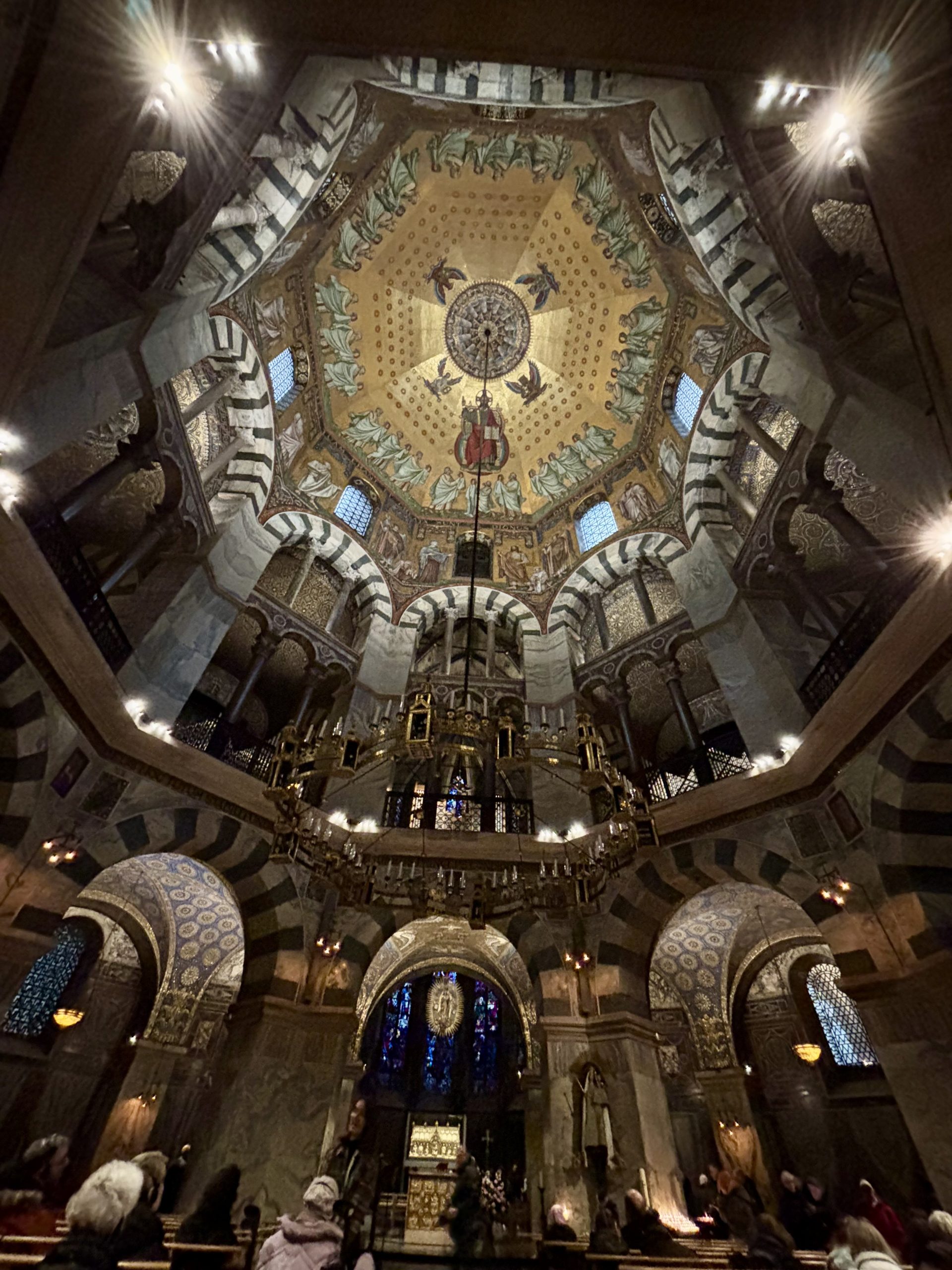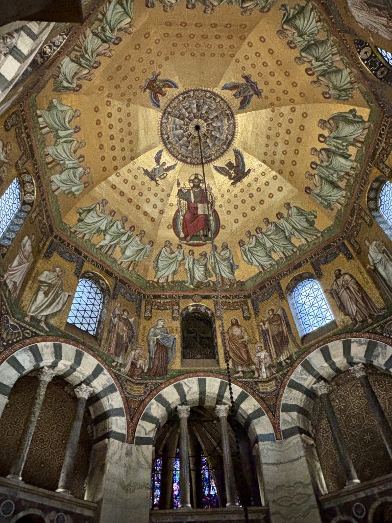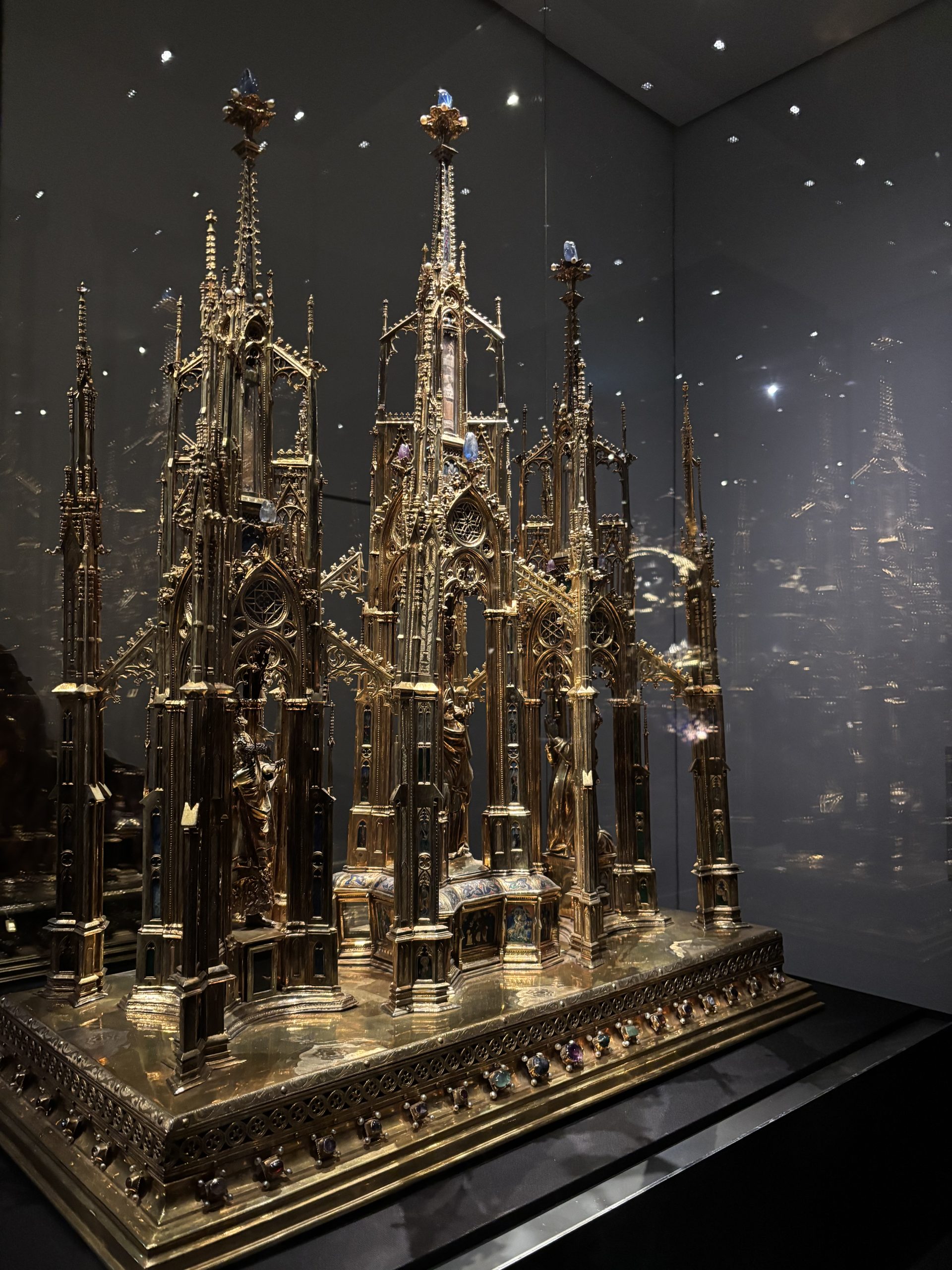 Après la visite de la cathédrale, visite en petits groupes du musée du Trésor de la cathédrale. Reliquaires en or, buste de Charlemagne, croix de Lothaire et sarcophage de Proserpine.