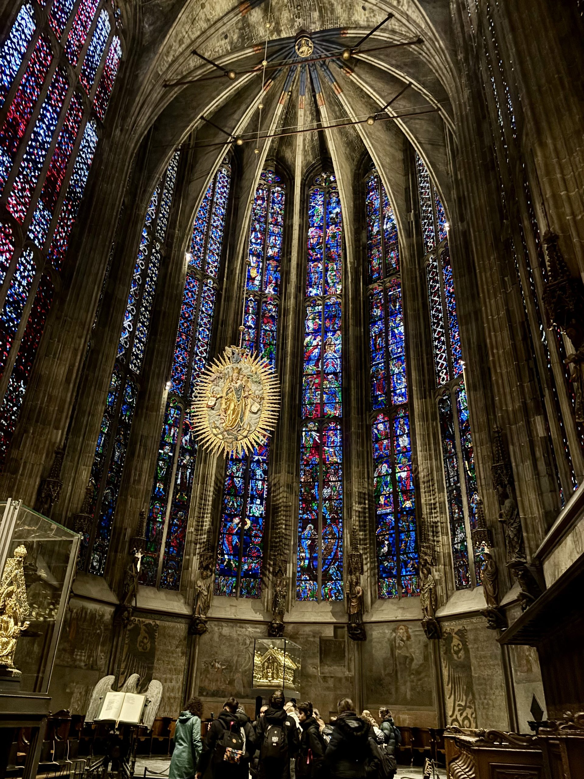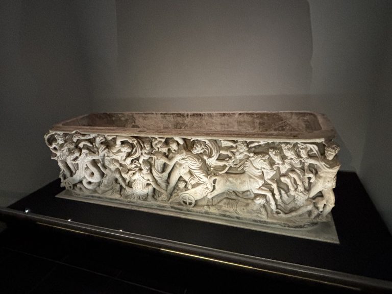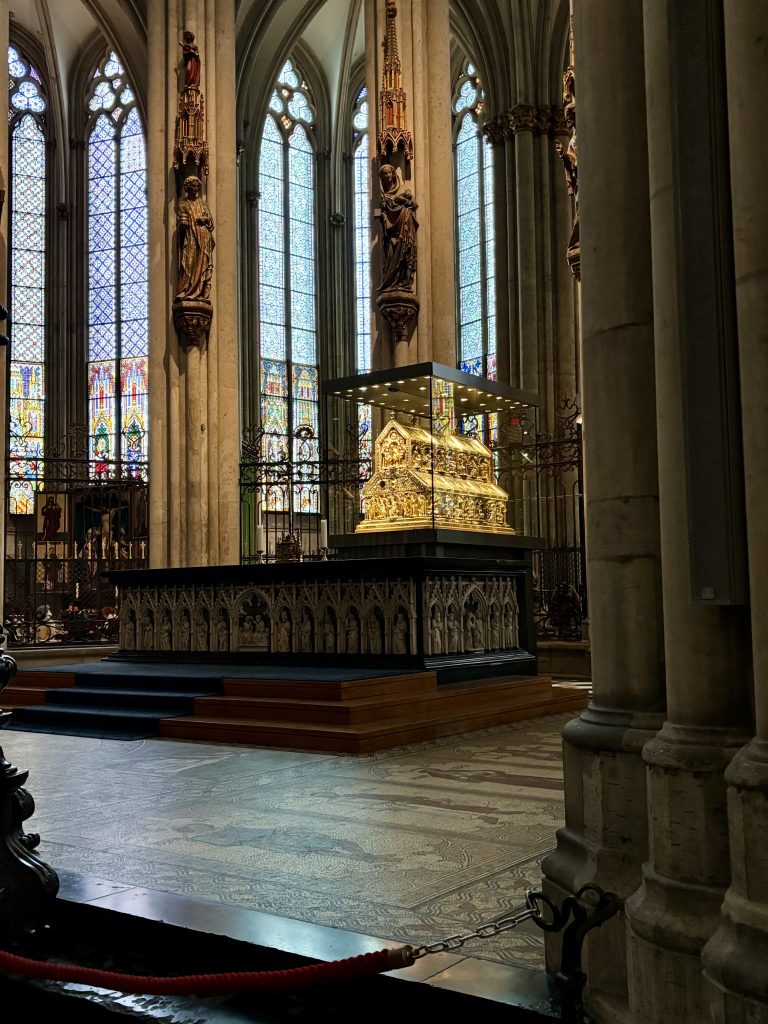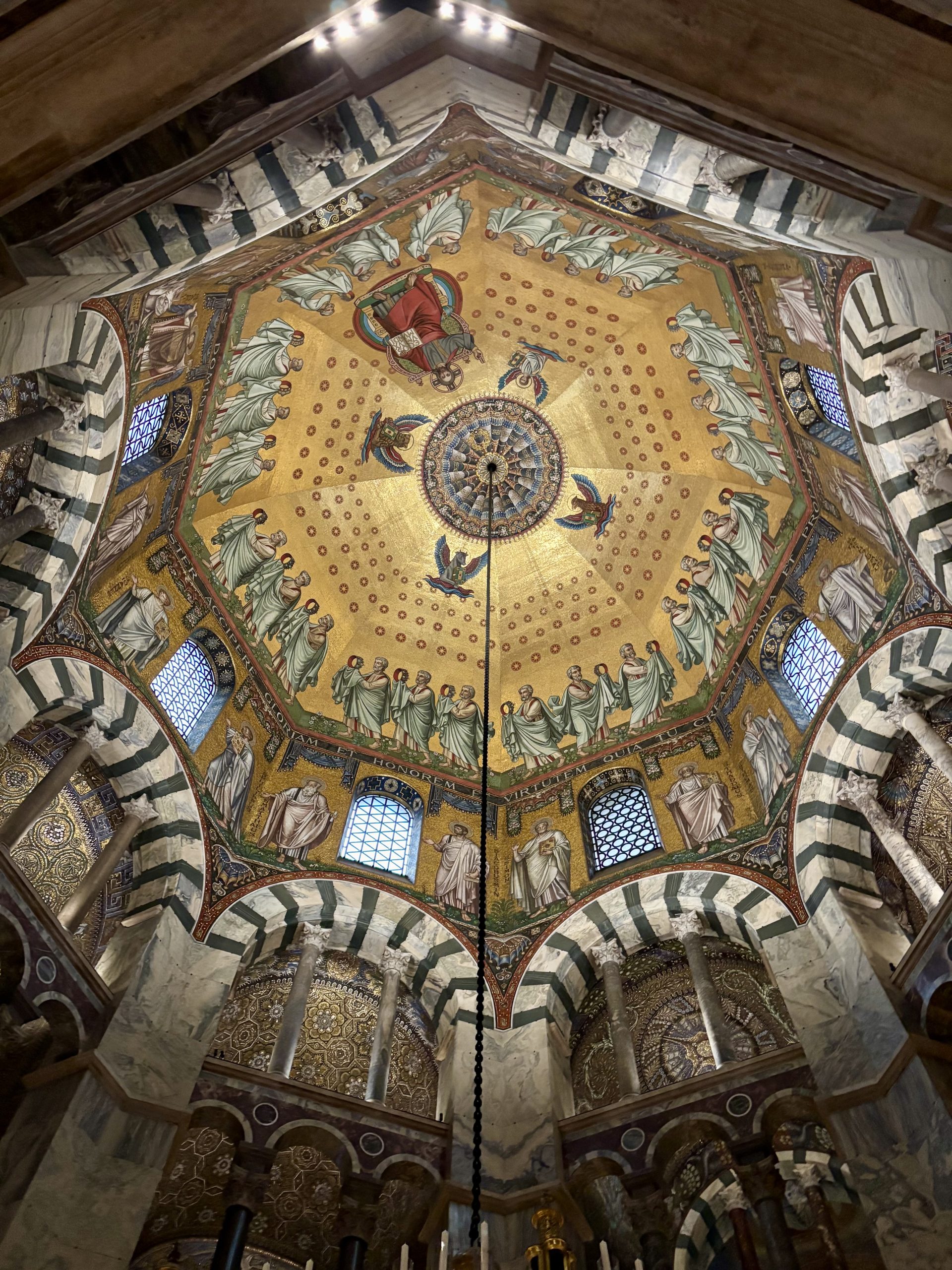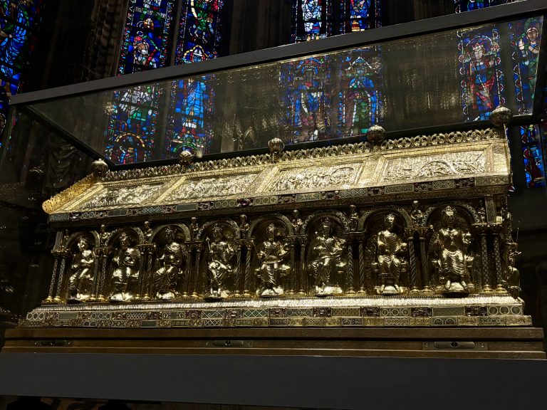Après la visite de la cathédrale, visite en petits groupes du musée du Trésor de la cathédrale. Reliquaires en or, buste de Charlemagne, croix de Lothaire et sarcophage de Proserpine.