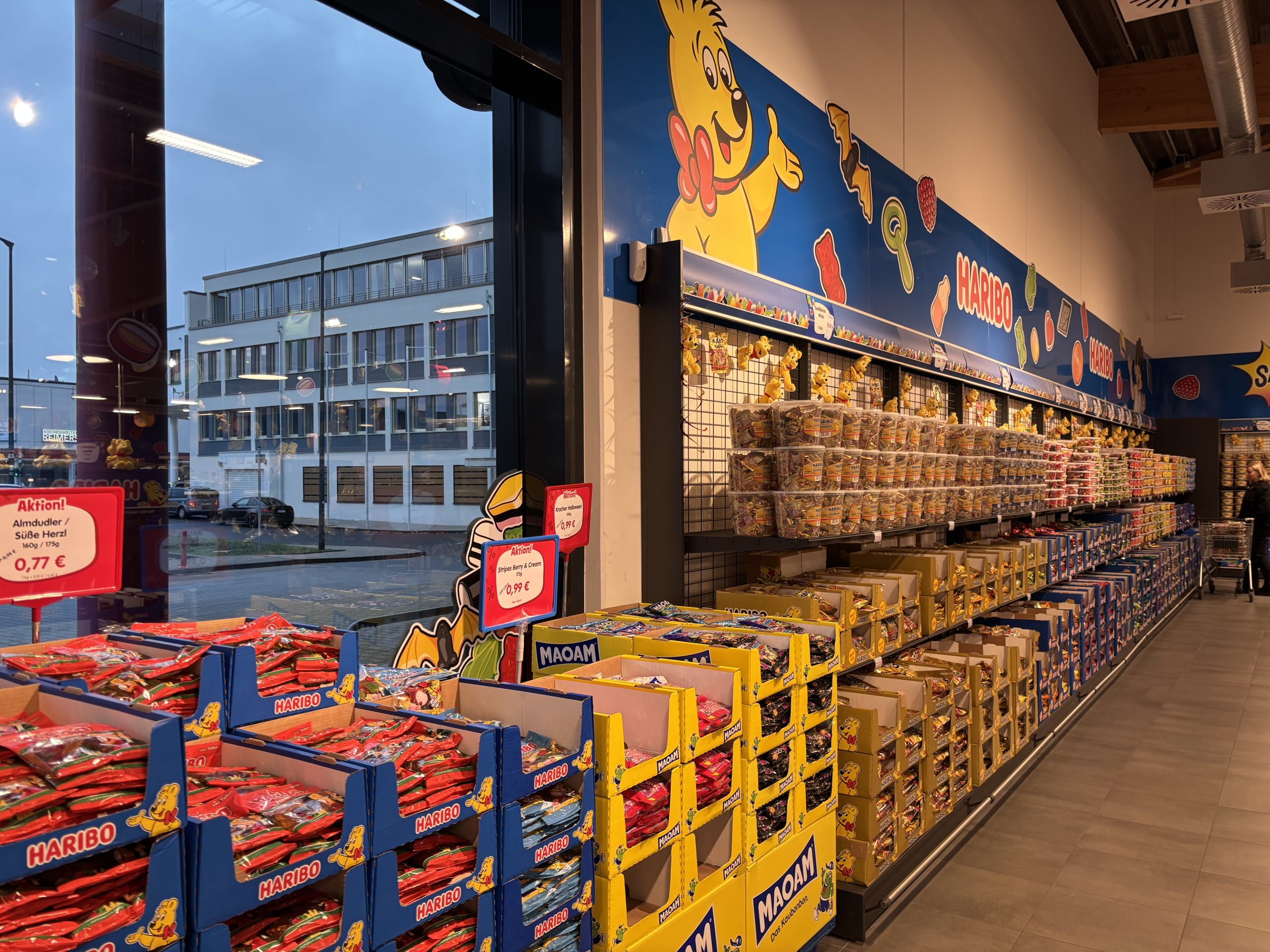 Fin d’après-midi plus détendue et moins sérieuse, mais tout aussi « typiquement allemande « , passage au magasin d’usine HARIBO- marque créée par HAns RIgel à BOnn, il y a plus de 100 ans.